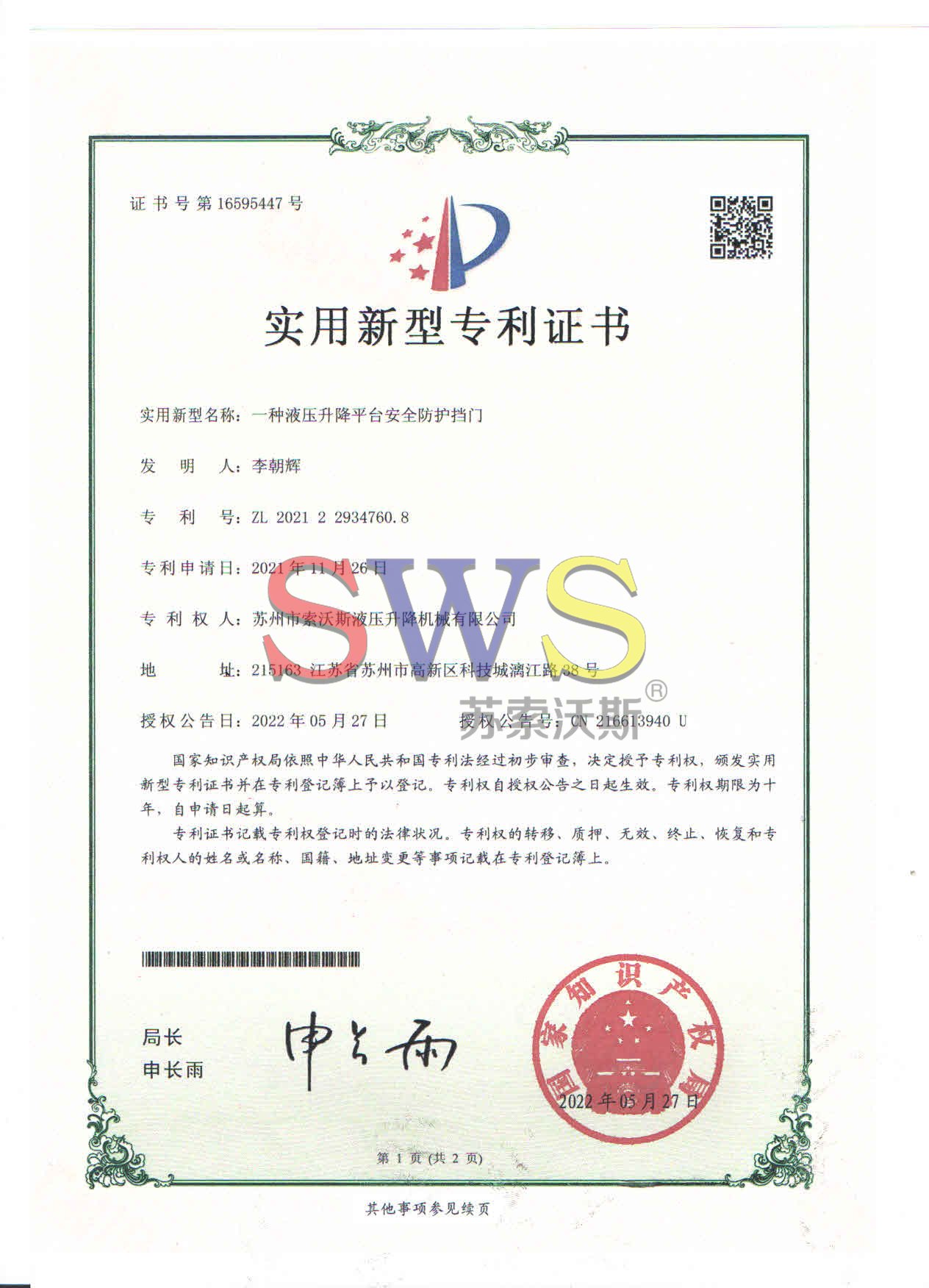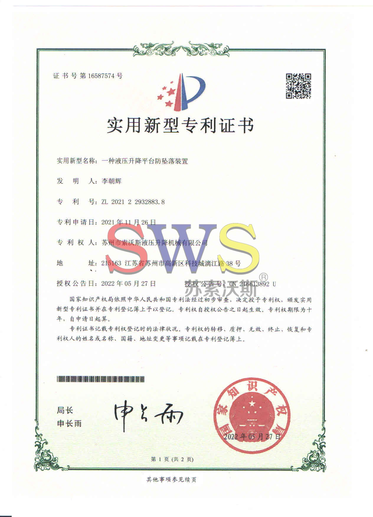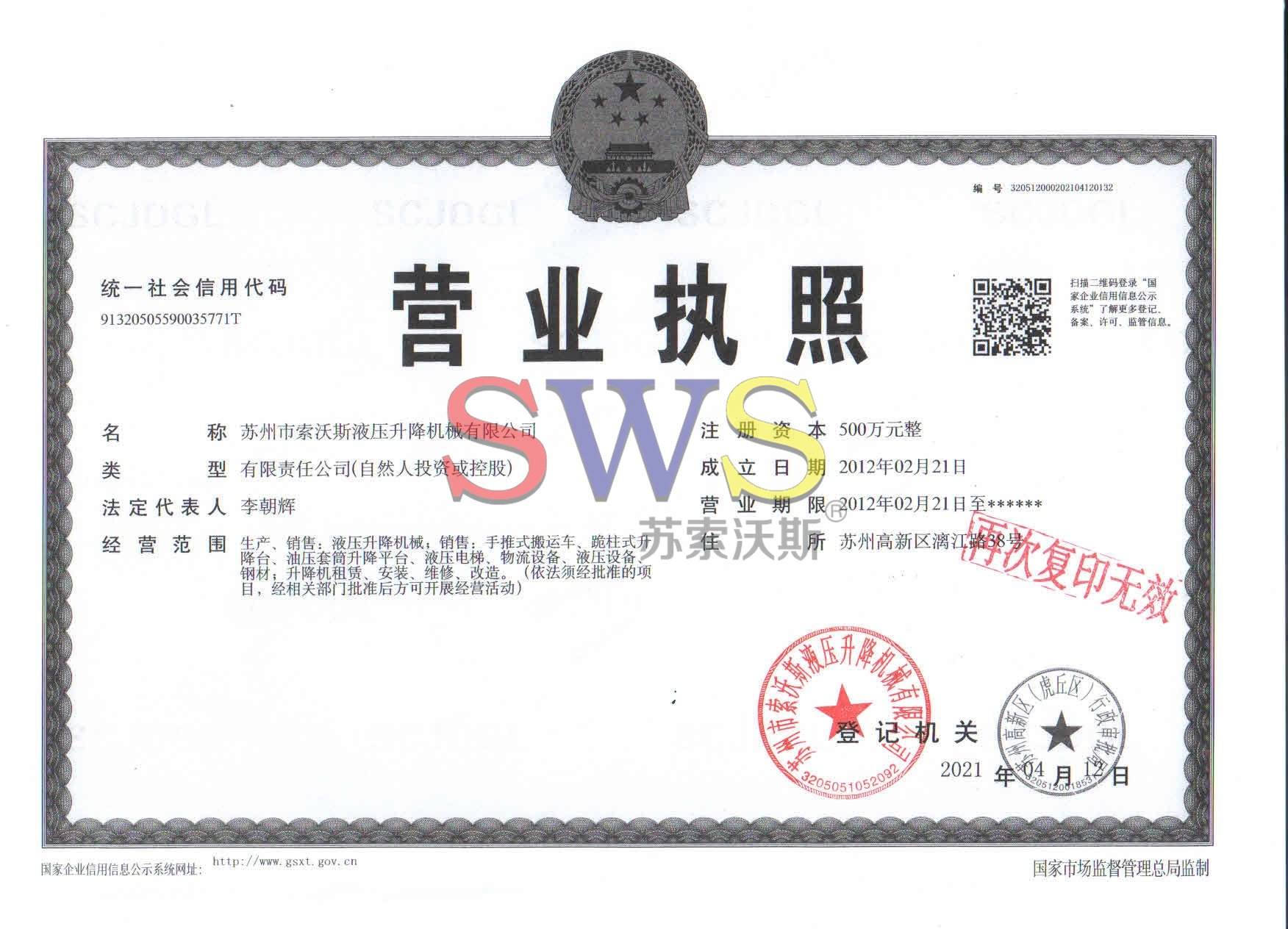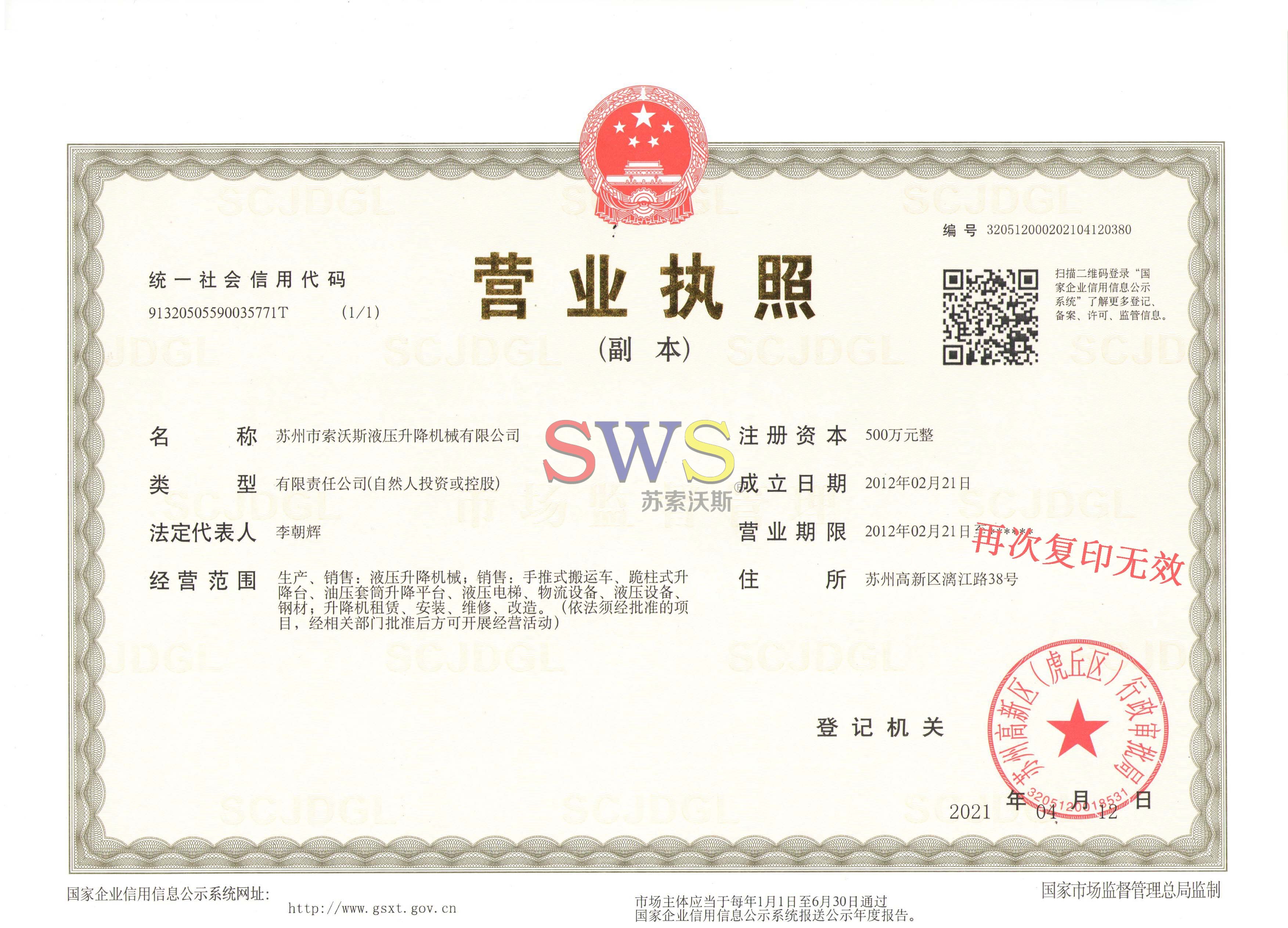 蘇州市索沃斯液壓升降機械有限公司